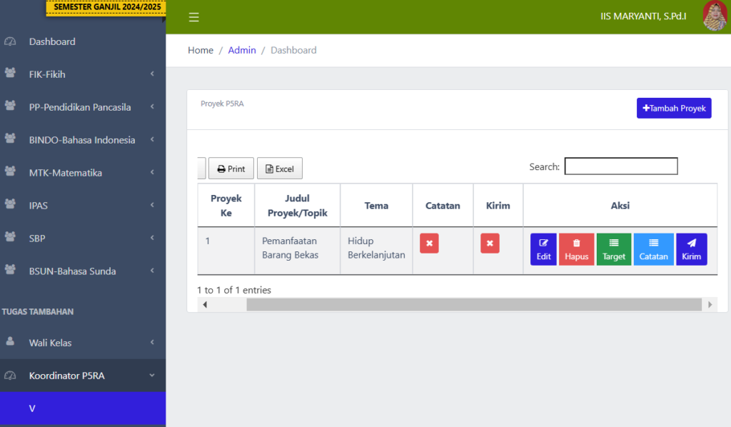 Setelah berhasil login, Anda bisa mulai menambahkan proyek untuk kelas yang Anda tangani. Berikut langkah-langkahnya:
