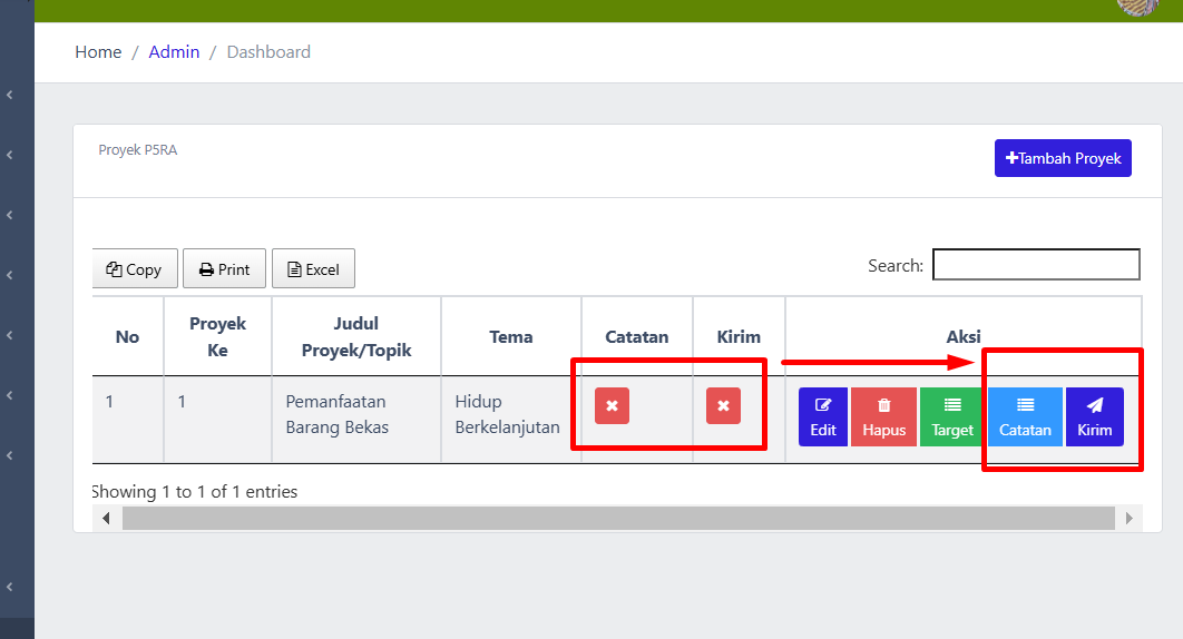 - Pilih proyek yang telah dikirim oleh koordinator P5RA.