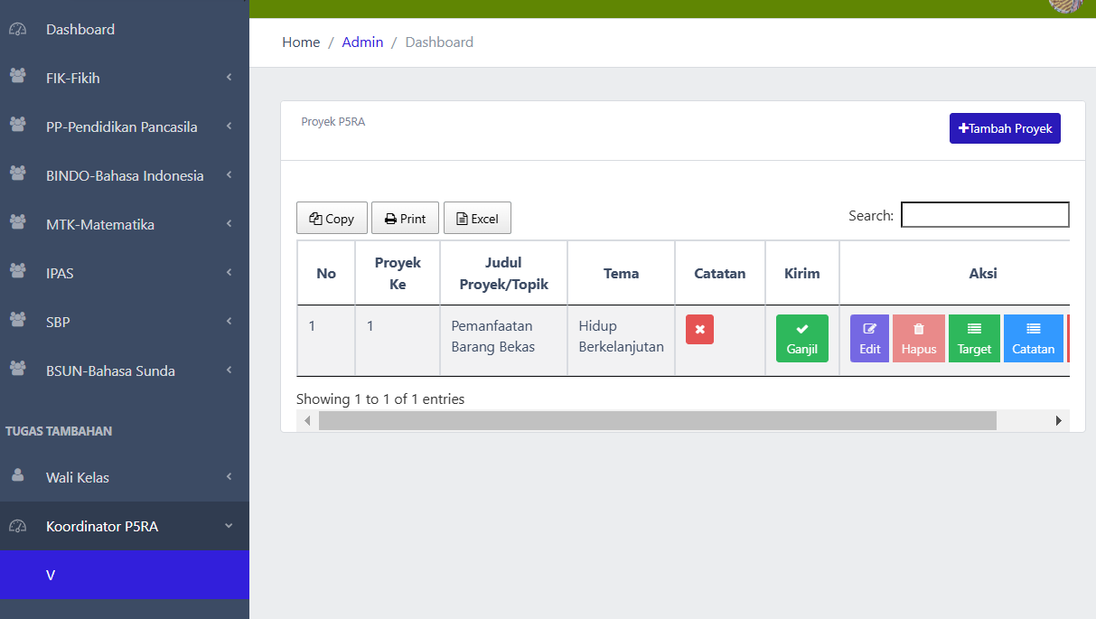 - Login menggunakan akun koordinator P5RA: